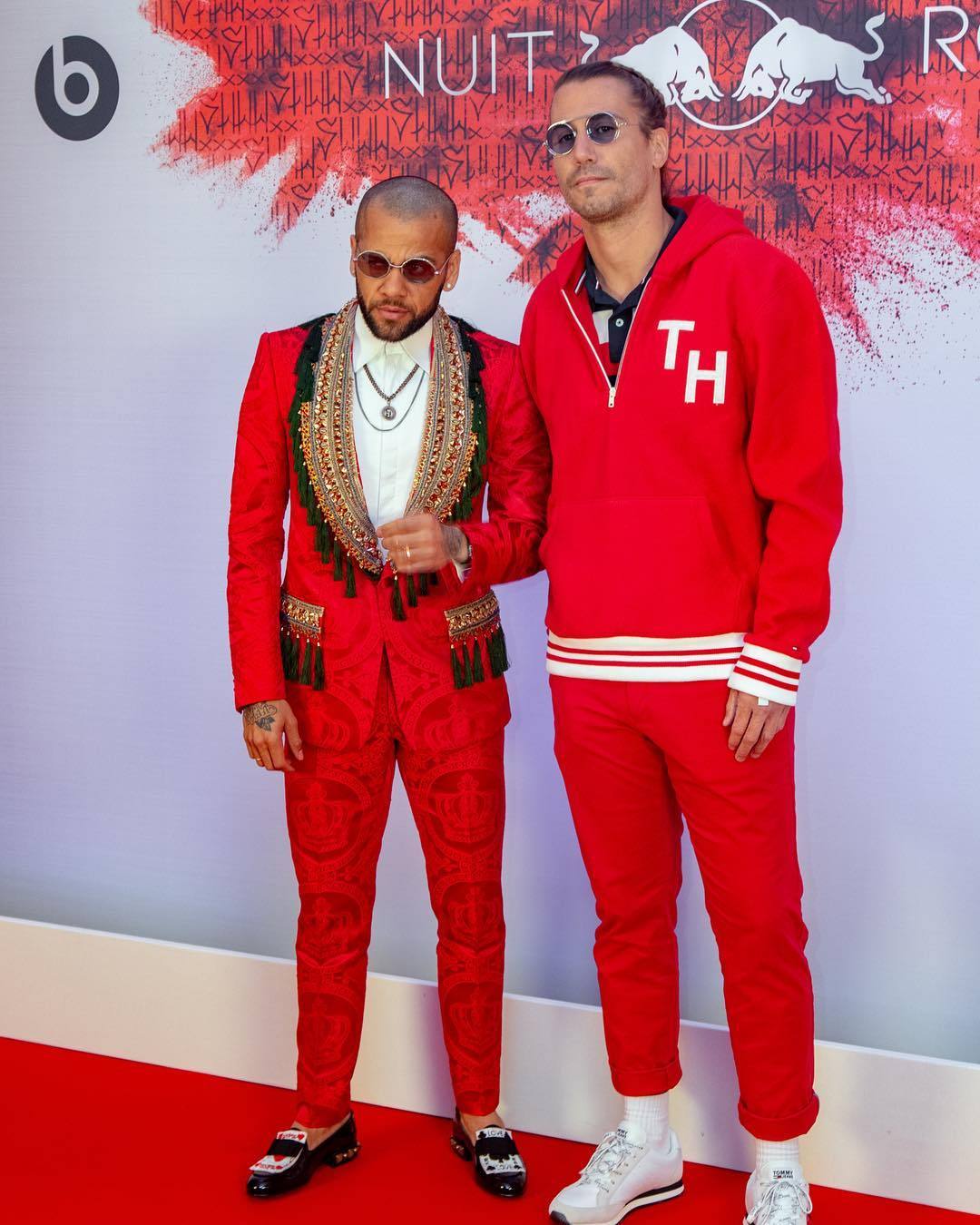 Daniel alves e o italiano marco verratti estiveram no lançamento, mas foi o lateral brasileiro quem mais chamou a atenção por seu modelo de roupa.